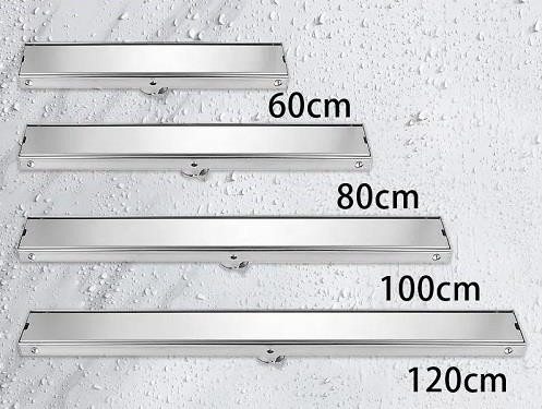 Kích thước: Có nhiều kích thước nhưng phổ biến nhất là 40cm, 60cm , 80cm và 1m. Phù hợp với nhiều khổ gạch và kích thước phòng tắm khác nhau. Kích thước dài của thoát sàn thường sẽ được chọn dựa theo bề rộng của phòng tắm đứng hoặc kích thước khổ gạch. Dùng mẫu thoát sàn có chiều dài trùng khớp với kích thước khổ gạch hoặc bề ngang phòng tắm là phù hợp nhất.